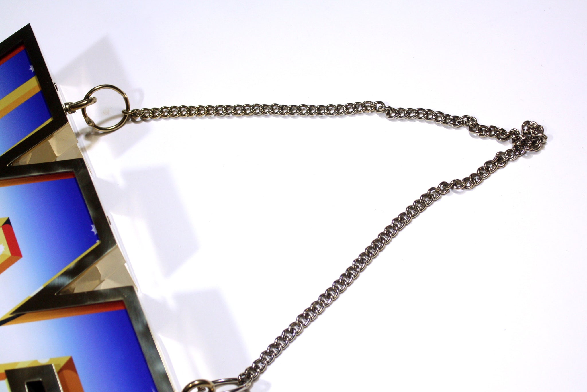 -attached chain for hanging (approx. 12" height)